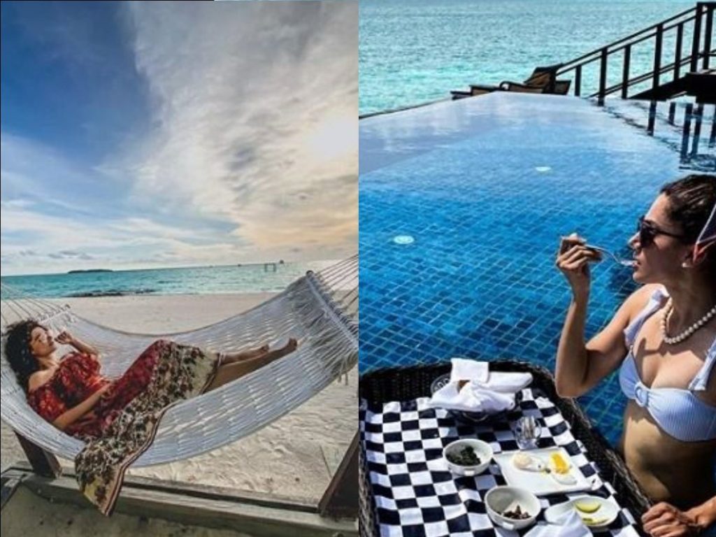 In another photo, Taapsee Pannu can be seen enjoying her floating tray breakfast at her resort. And looking towards the ocean. Captioning the photo she wrote “While I take a break, my super-efficient Munmun Ganeriwal continues to hold the fort for me. As she shifts me into a shredding diet for #RashmiRocket. She gets me to indulge in this yummy, holiday breakfast of eggs, avocados, and mushrooms rich in proteins and good fats. As they say, the right people in your life can get things ‘floating’ for you and in my case, it’s done quite literally! #OnADietPlan,”