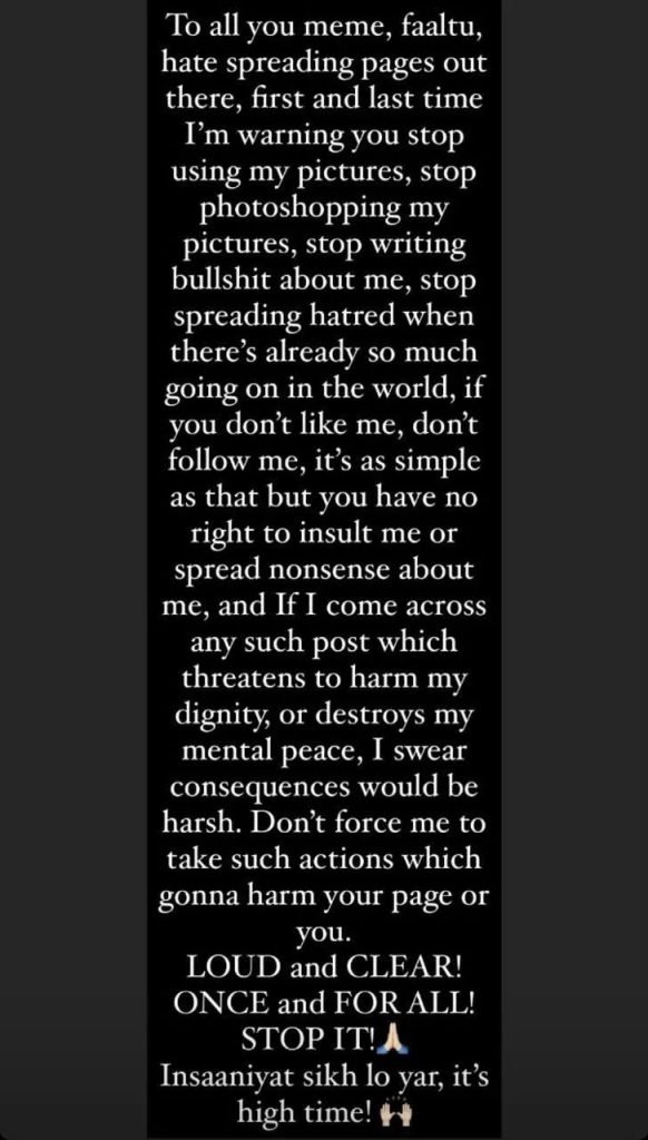Earlier, the actress shared an Instagram story warning to refrain from using her photos on some insta pages. Palak posted this while warning about photoshop being misused about her.