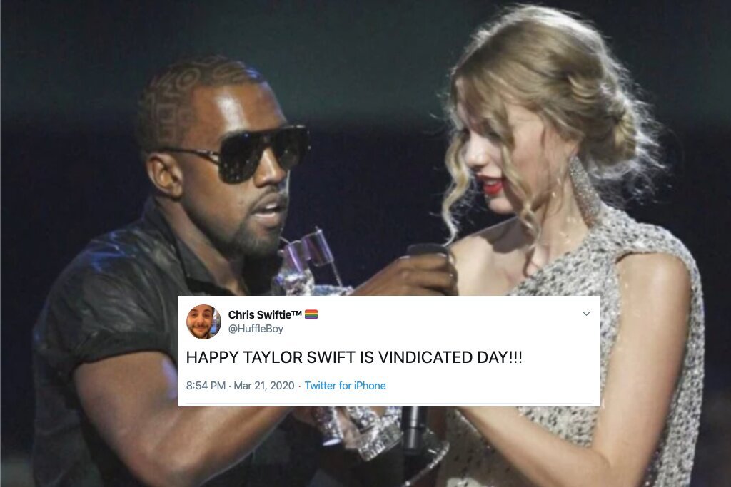 Rewind to 2009, when Beyoncé was supposed to win, and Kanye famously cut off Swift’s acceptance speech for Best Female Video at the MTV Video Music Awards.