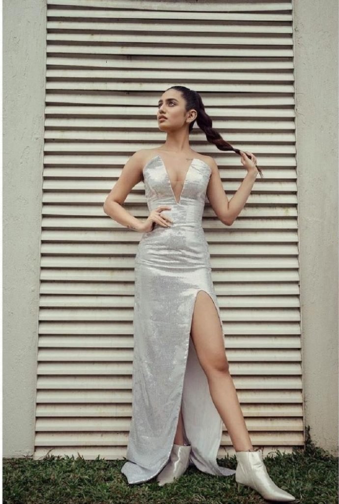And now once again she came under the spotlight. With her bold pics. This time she was spotted in a long silver high slit dress that she paired with the matching silver boots. And no wonder she was looking as bold as she really is. So let’s check out the photos of this wink girl who started her journey from a video and now became a star that currently has, 73 lakh followers on Instagram.