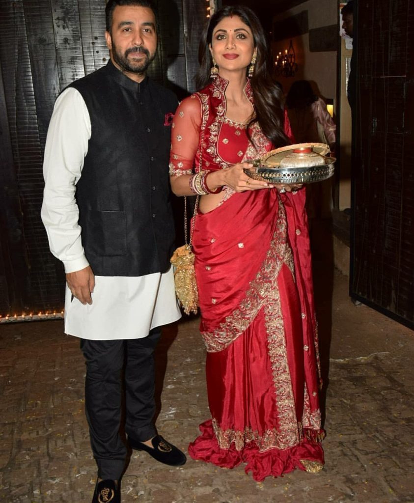 These love birds as usual celebrated it with great enthusiasm. Shilpa was seen in red and her saree looked amazing!