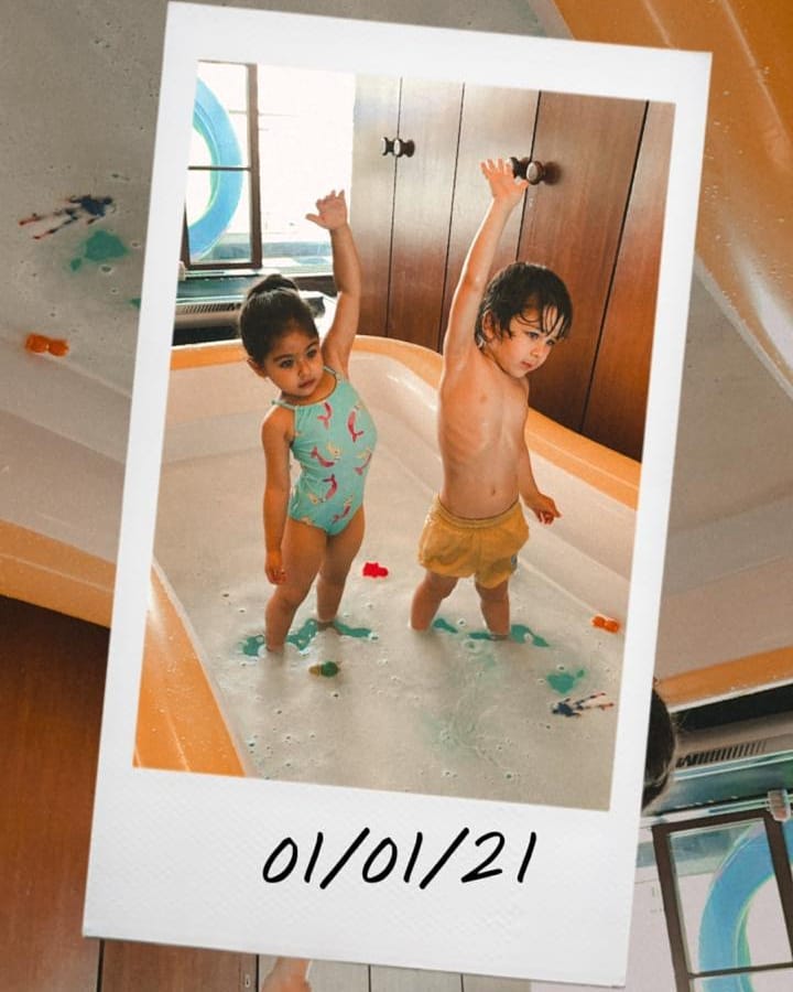 Actress Kareena Kapoor Khan who gives treats to her fans by posting numerous family photos has shared yet another post to welcome New Year – 2021. The actress who earlier gave a glimpse of the family get together has this time, shared a photo of her son Taimur Ali Khan, along with his cousin Inaaya Naumi Kemmu. Who is Soha Ali Khan-Kunal and Kemmu’s daughter. Kareena clicked the photo of Taimur and Inaaya from their bathtub. Posting the photo, Kareena wrote. “We are ready for you 2021”. Although the photo of the kids is quite adorable, but soon after the picture made rounds on social media. It was also trolled by the netizens. In the image, we see Taimur and Inaaya raise their hands. But what actually has caught people’s attention was Taimur’s ribs. Which has left a few netizens concerned.