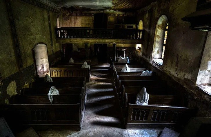 How will you feel if you see a dark building surrounded by a cemetery, creaky floors? You go inside and see ghosts – white figures shimmering in the semi-darkness of the church, which filled the entire space from the entrance to the altar. And instead of faces black bottomless holes gaze at you. There is a silence in the church, but it seems that is louder than the sounds of the most powerful explosion. Well, we are not talking about any horror film but here we are talking about the scariest church ever.