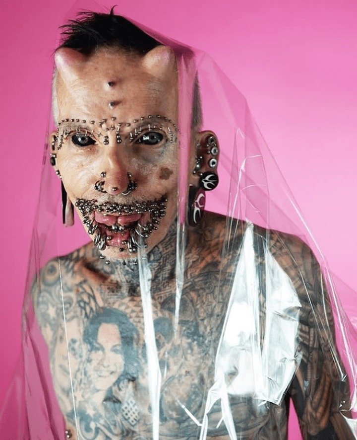 Most of these piercings are in their face and genitals. Buchholz got the first tattoo and piercing in his body at the age of 40, since then for 20 years he has been getting piercings on his lips, eyebrows, nose, not only that, he has put two small horns on his head.