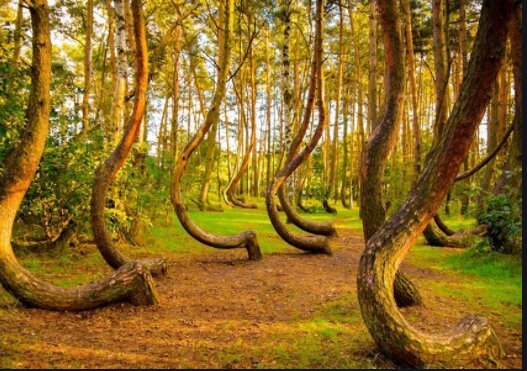 8. The Crooked Forest is located just outside the town of Nowe Tsarnovo, Western Pomerania, Poland. About 400 conifers with curved trunks grow in the forest. They were planted somewhere in 1939, but who and why made them so is unknown.