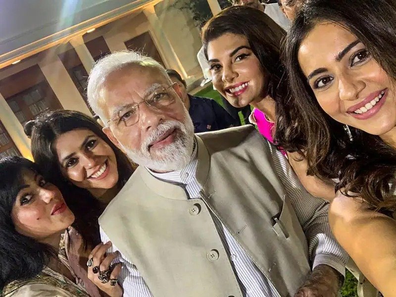 Woah ! PM Narendra Modi posing with B-town super gorgeous ladies like Jacqueline Fernandez.Ekta Kapoor, Ashwiny Iyer Tiwari, Kangana Ranaut and Warda Nadiadwala. Well, it is good to see him like this. Because we have always seen him surrounded by political leaders.