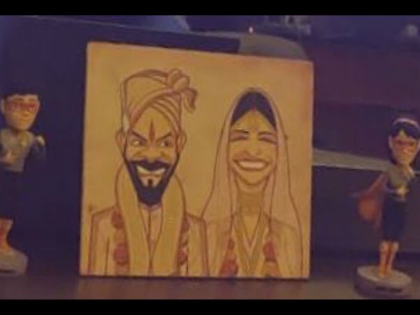 This sketch of both is made in the wedding dress, which have placed on a stand under the TV. Fans got an eye on it and it is being liked by them.