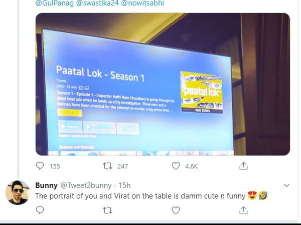 Recently, Anushka Sharma has shared a picture in which she is seen watching the ‘Paatal Lok‘ web series. This picture is being discussed very much on social media. This is because of the unseen funny picture of Anushka Sharma and Virat Kohli’s wedding.