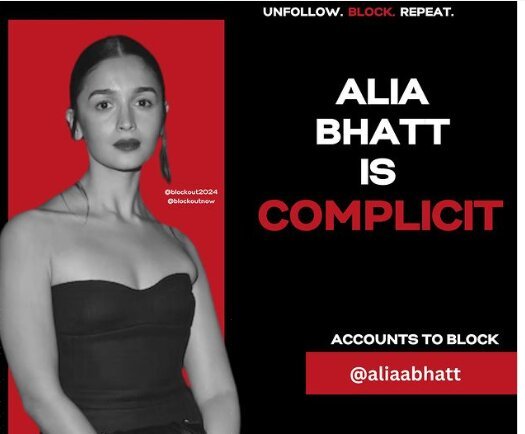 Let us make it clear that amid the ongoing Isreal-Gazal conflict, a digital protest has begun on social media. In this protest, individuals are purposefully blocking those celebrities who have not spoken in public about the conflict or support of Gaza. In this list apart from Alia other celebrities on the blocklist are Virat Kohli, Priyanka, Kim Kardashian, Taylor Swift, Beyonce, Kylie Jenner, Zendaya, Miley Cyrus, Selena Gomez, Ariana Grande, Demi Lovato, Kanye West, Katy Perry, Zac Efron, Nick Jonas, Kevin Jonas, Justin Timberlake and many others.