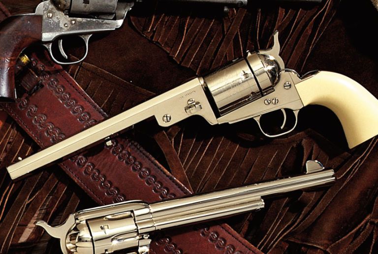 Standard revolvers of the 19th century usually had a drum with 6 chambers, where cartridges were inserted and, after rotating the drum around its axis, were fed to the barrel for firing.