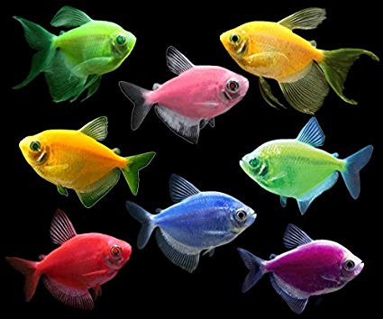 GloFish were developed by Yorktown Technologies, L.P. These are genetically engineered fluorescent fishes made by inserting multiple fluorescent colours.