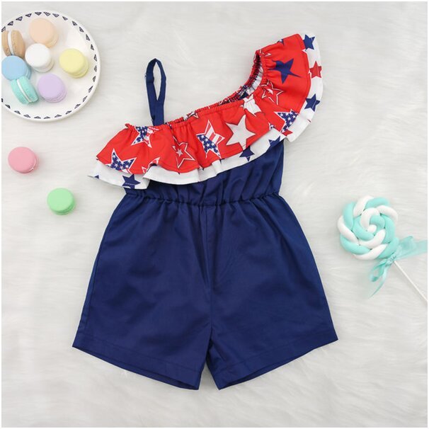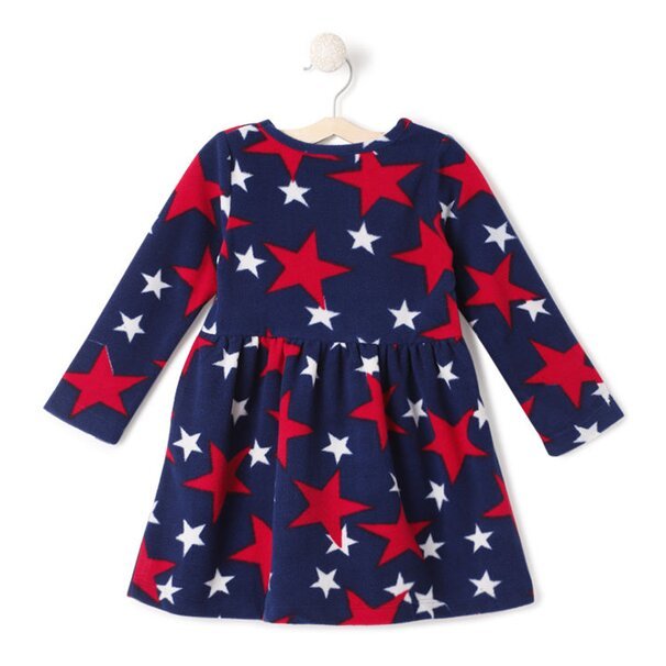 Your little shining star needs a dress that befits her charming personality. This navy-blue dress with white and red stars is a great outfit that is comfortable for routine purposes and is yet different and stylish.